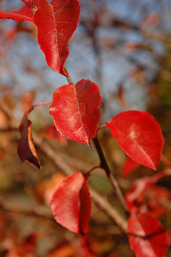 White flowers appear after the leaves and develop into small fruit. This tree is noted for its excellent fall color, when the green leaves turn red to reddish purple. It thrives in full sun, grows quickly, and adapts well to most soil types. Korean Sun pear is drought tolerant and has high resistance to powdery mildew and leaf scorch.